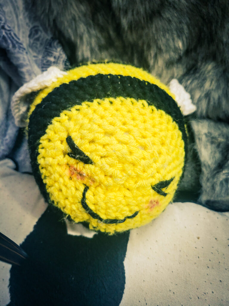 I created this crochet bee named “Poppy” because it is an easy, beginner-friendly project that is also fun. Sure, she might not be perfect, yet she is cute in her own way.