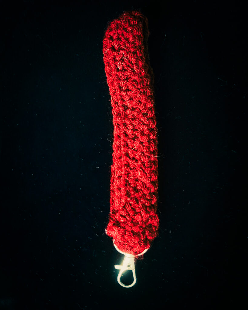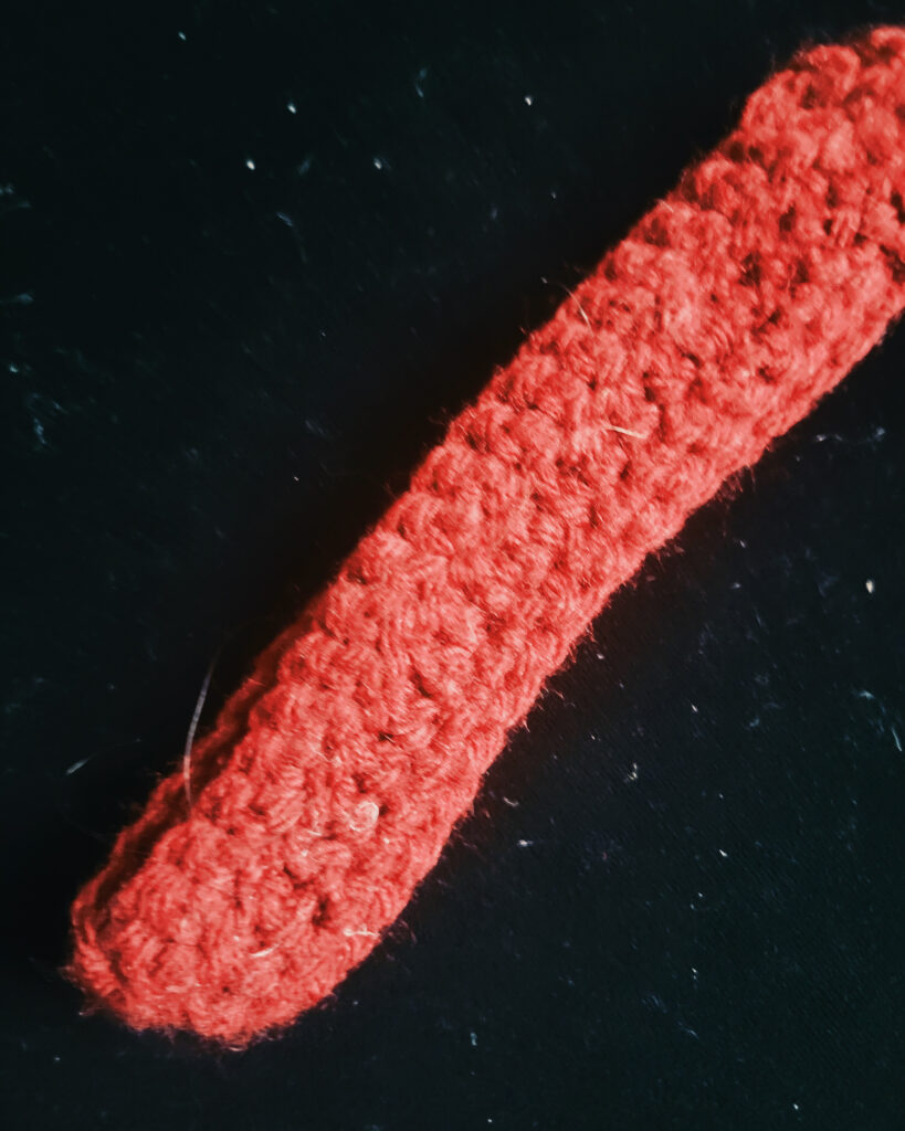 Today I started with a deep red yarn and decided to just make a thin ribbon.