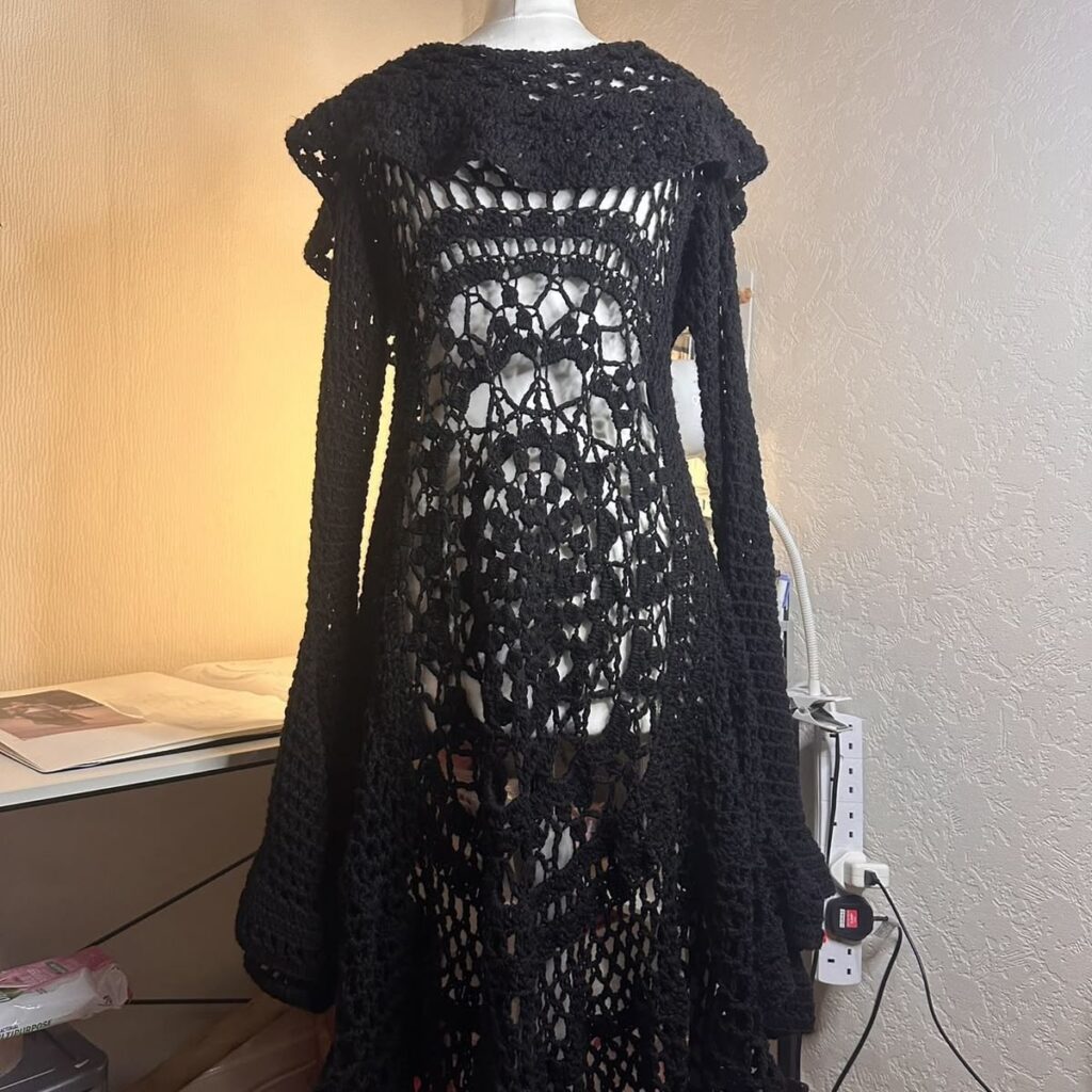 For my final project, I propose designing and constructing a full-length black crochet coat that investigates texture, structure, and material contrast within a monochromatic framework. The project centers on the intentional use of shell stitch and netting stitch to create variation in density, transparency, and surface rhythm. Rather than relying on color contrast, the design will emphasize textile differences and stitch architecture to define form and movement.